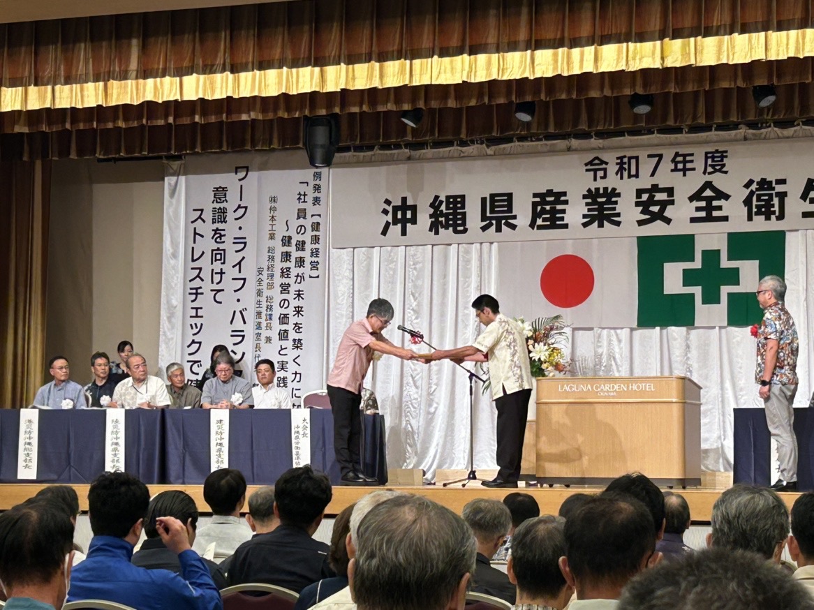 令和7年度 沖縄県産業安全衛生大会にて弊社・新垣朝央部長が「功労賞」を受賞しました